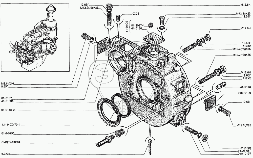 Каталог запасных частей к технике: Алтайдизель А-41. Картер маховика