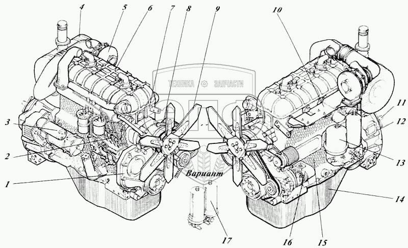 | 9 | 444-13с1 | Насос водяной и вентилятор | Нет на складе | |