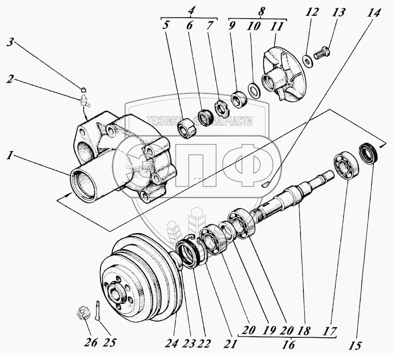 Каталог запасных частей к технике: Алтайдизель Д-442. Насос водяной 442-13с3-2Г