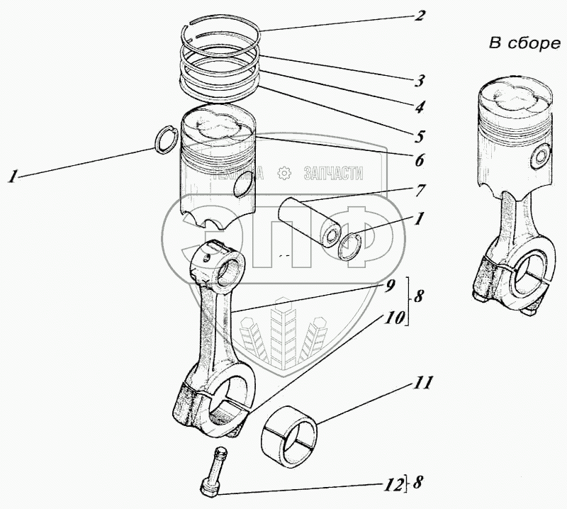 Каталог запасных частей к технике: Алтайдизель Д-442. Поршень с шатуном 463-03с1