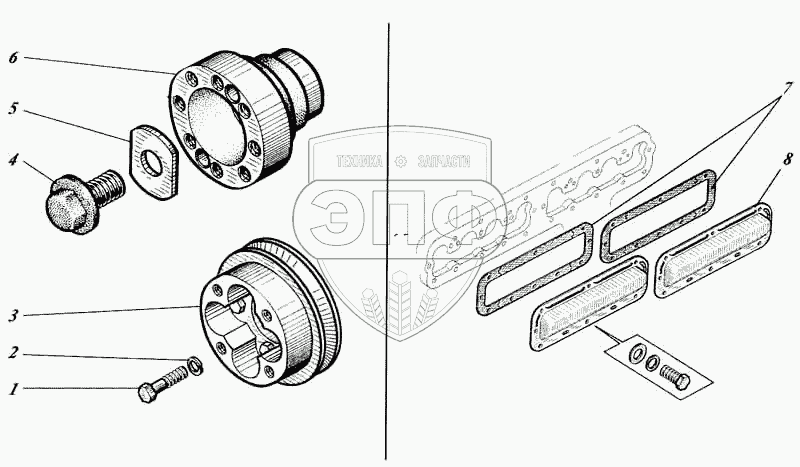 Каталог запасных частей к технике: Алтайдизель Д-442И. Установка шкива