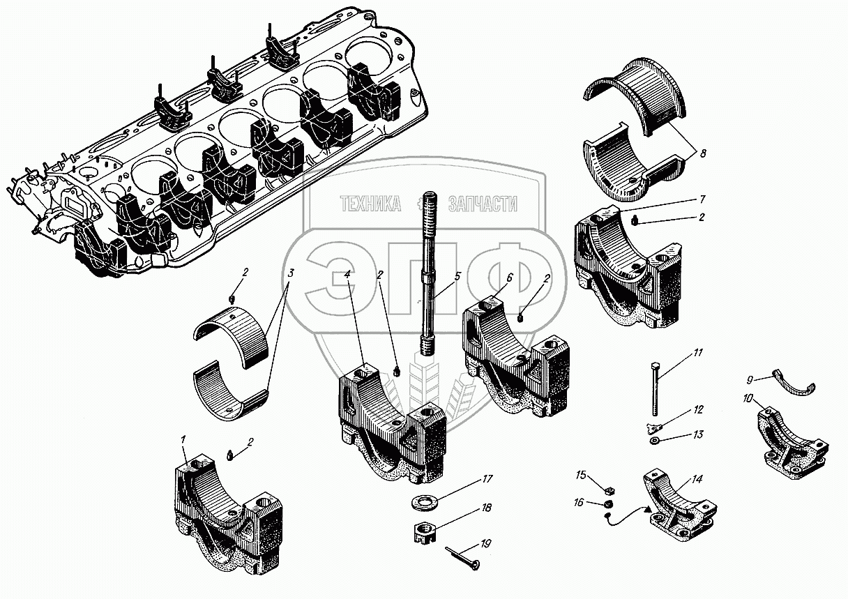 Каталог запасных частей к технике: Барнаултрансмаш Дизели Д12С1. Коренные подшипники