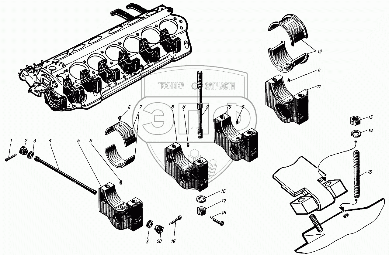 Каталог запасных частей к технике: Барнаултрансмаш Дизели Д12С1. Коренные подшипники