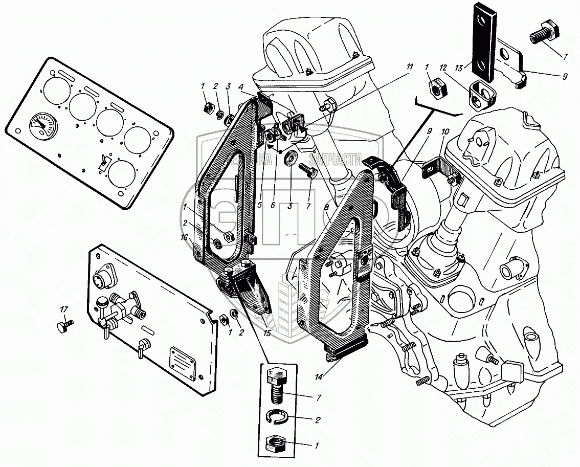 Каталог запасных частей к технике: Барнаултрансмаш Дизели Д12С1. Кронштейны крепления щитка управления