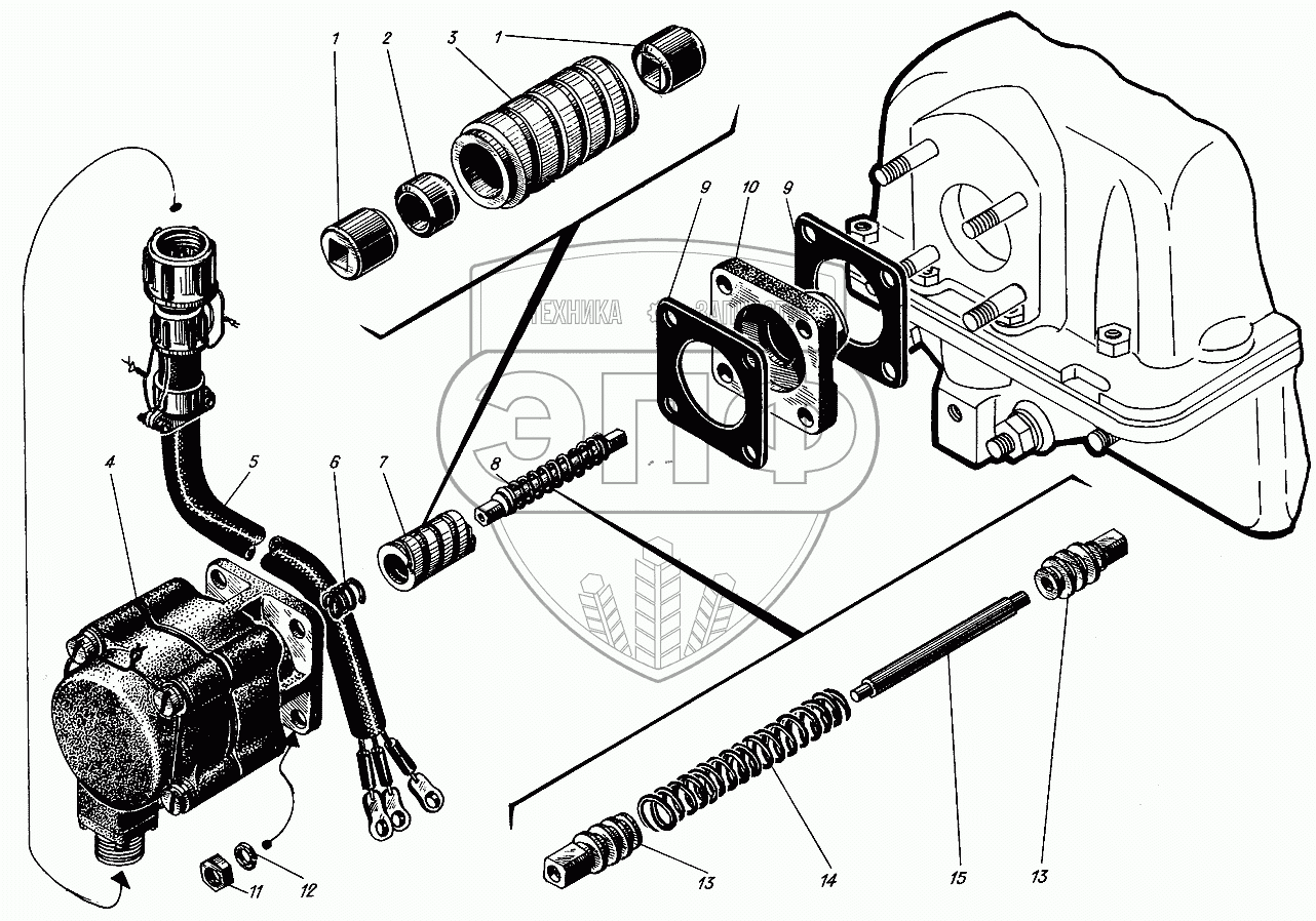 Каталог запасных частей к технике: Барнаултрансмаш Дизели Д12С1. Первичный преобразователь тахометра и детали привода