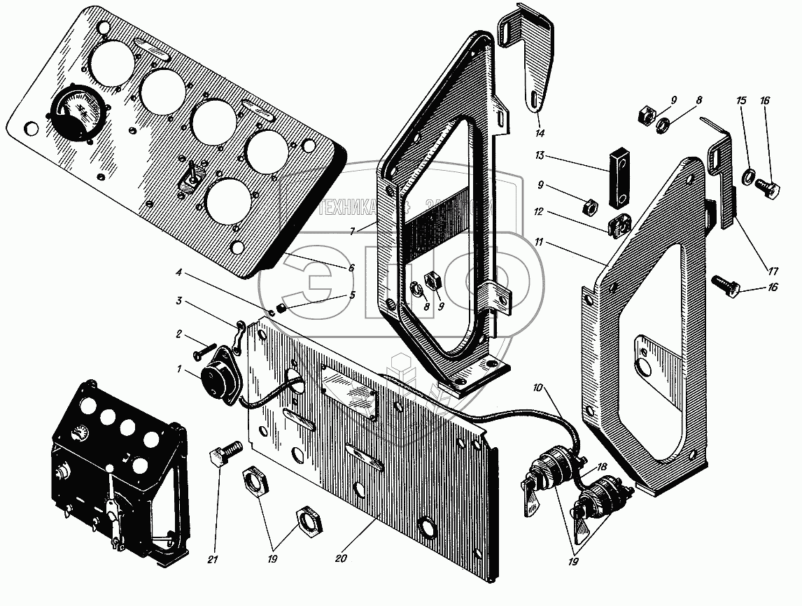 Каталог запасных частей к технике: Барнаултрансмаш Дизели Д12С1. Щиток управления дизелем