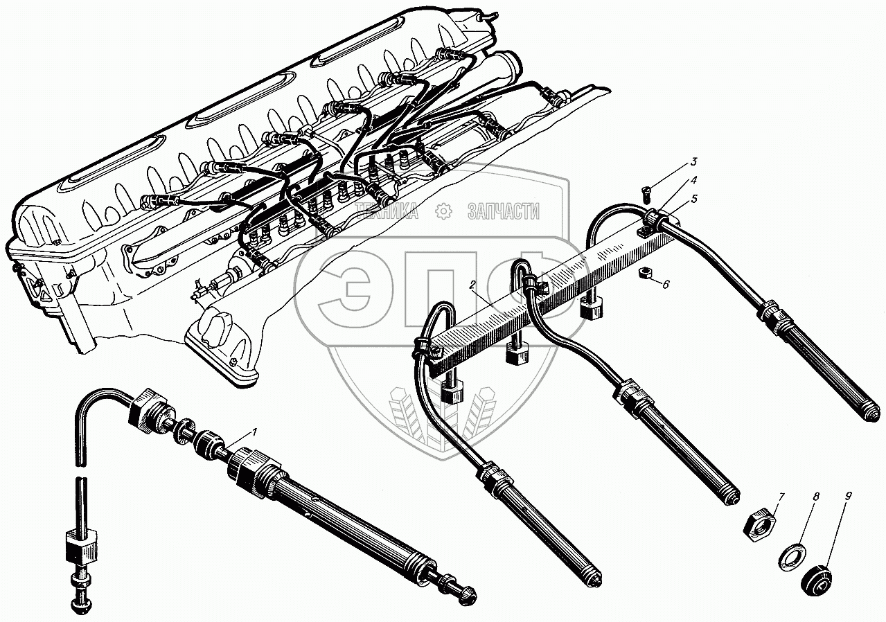 Каталог запасных частей к технике: Барнаултрансмаш Дизели Д12С1. Трубки нагнетательные высокого давления