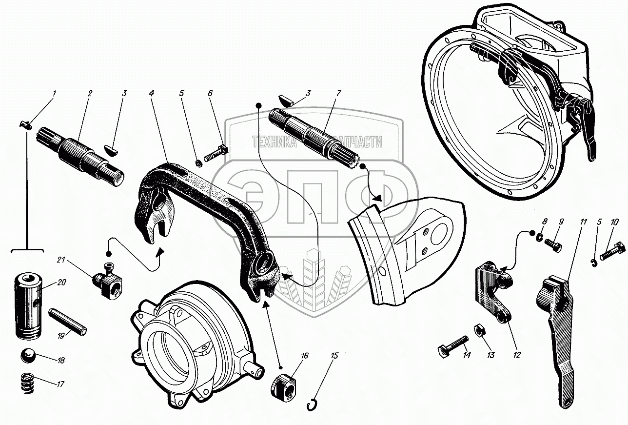 Каталог запасных частей к технике: Барнаултрансмаш Дизели Д12С1. Вилка включения муфты
