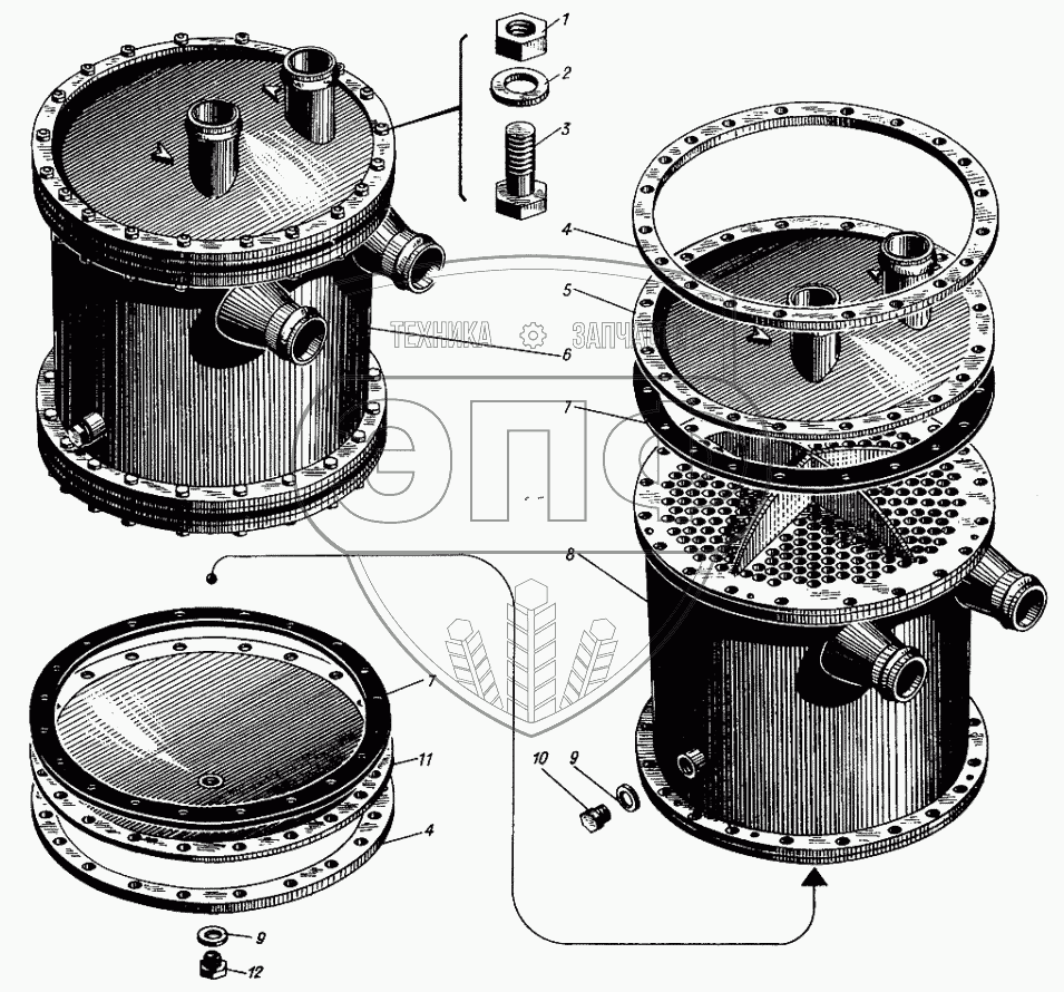 Каталог запасных частей к технике: Барнаултрансмаш Дизели Д12С1. Водяной охладитель