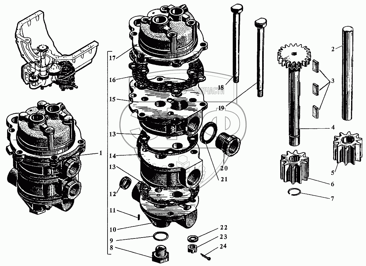 Каталог запасных частей к технике: Барнаултрансмаш Дизели Д12С2. Детали масляного насоса