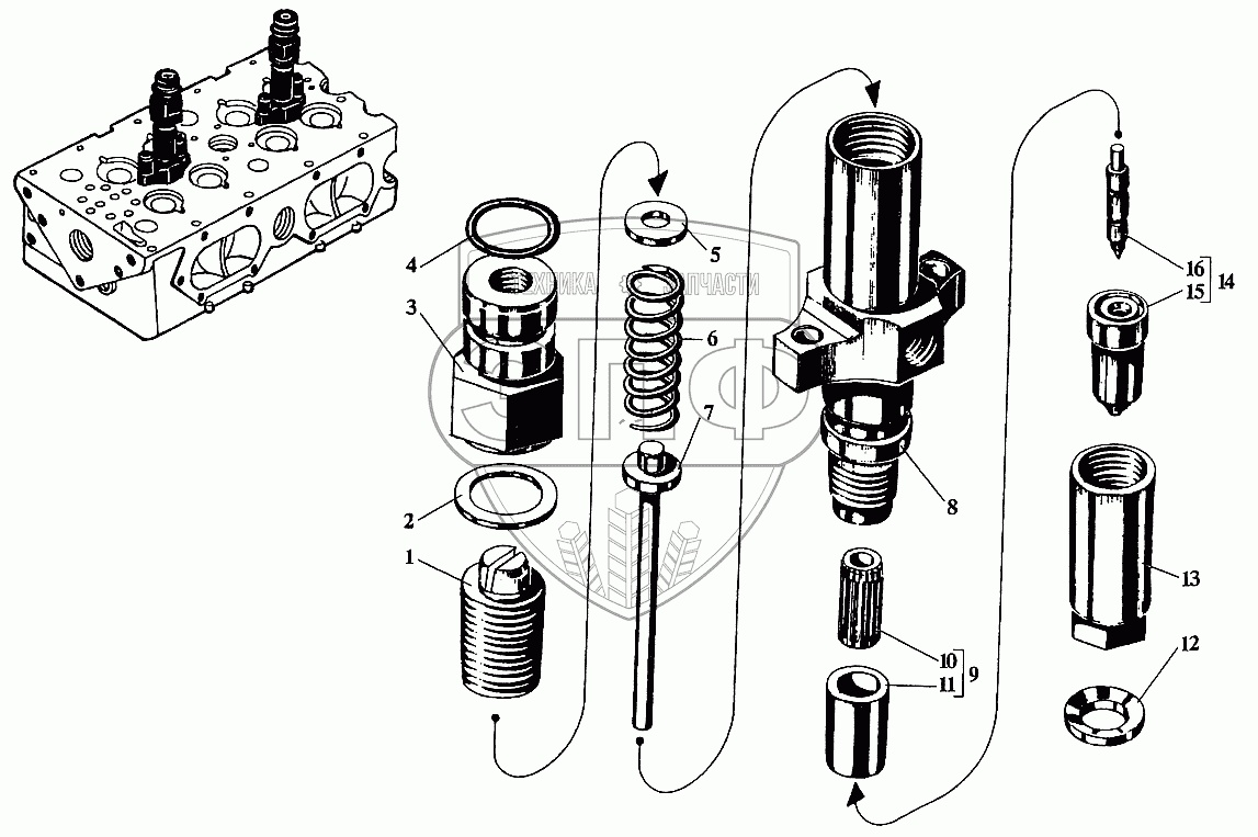Каталог запасных частей к технике: Барнаултрансмаш Дизели Д12С2. Форсунка