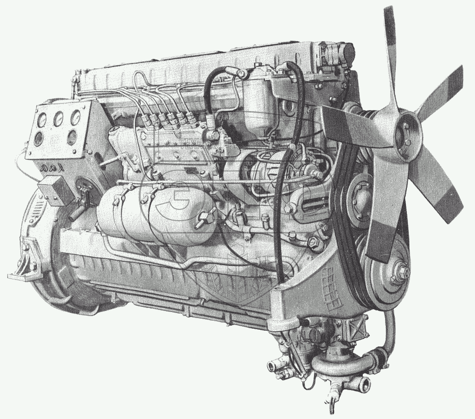 Каталог запасных частей к технике: Барнаултрансмаш Дизели Д6С1. Дизель 1Д6БА (вид слева)