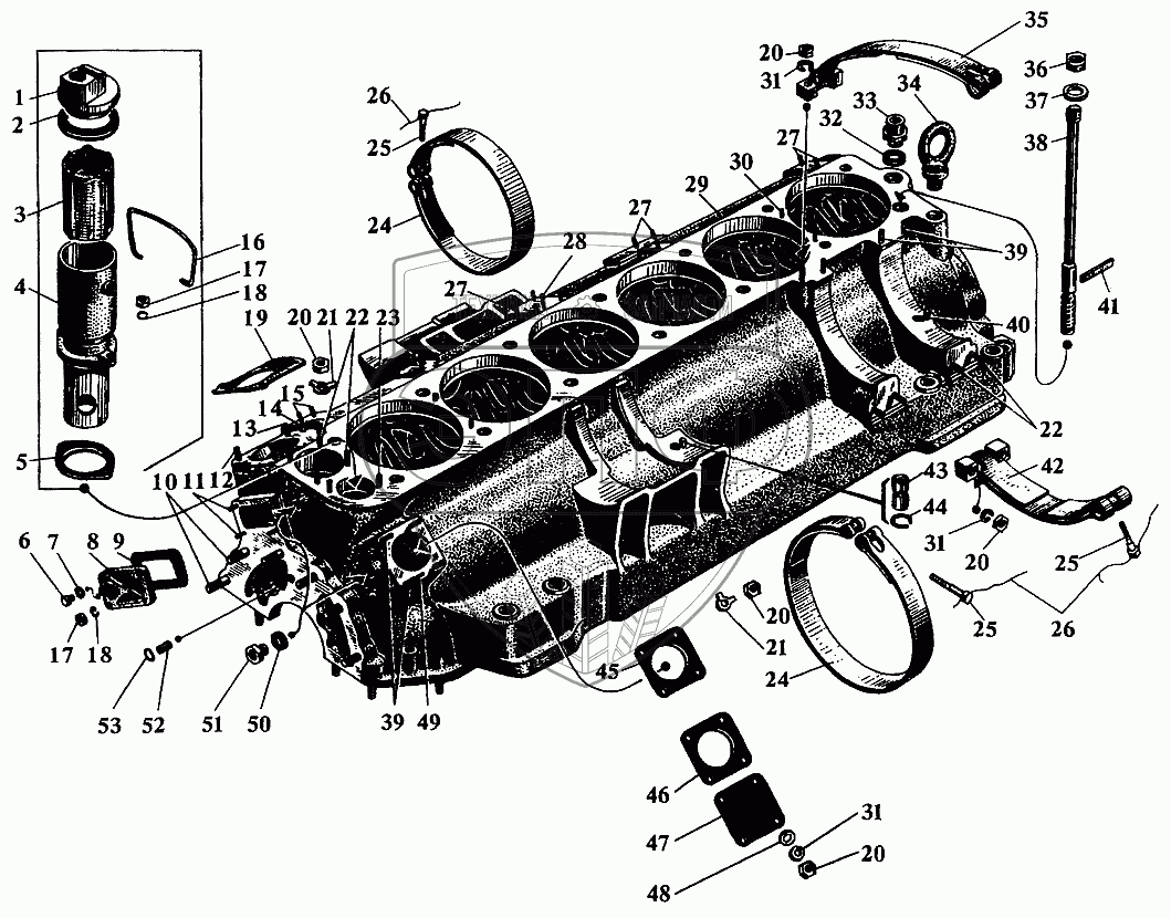 Каталог запасных частей к технике: Барнаултрансмаш Дизели Д6С2. Картер верхний