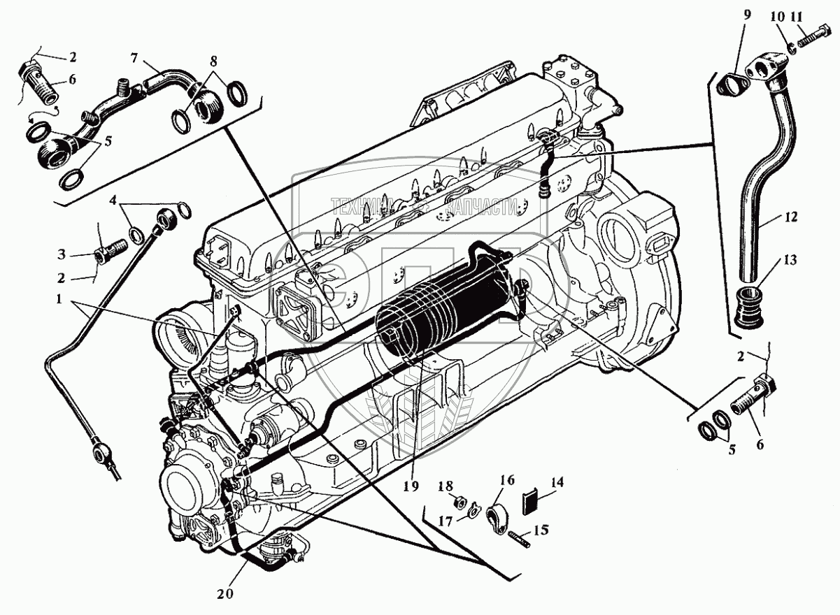 Каталог запасных частей к технике: Барнаултрансмаш Дизели Д6С2. Трубопровод масляный