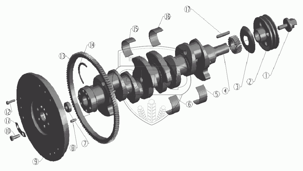 Каталог запасных частей к технике: BAW Двигатель BAW-1044 E2. Crankshaft and Flywheel Assembly