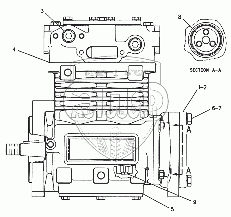 Каталог запасных частей к технике: Caterpillar-3116. 125-9562 Воздушный компрессор