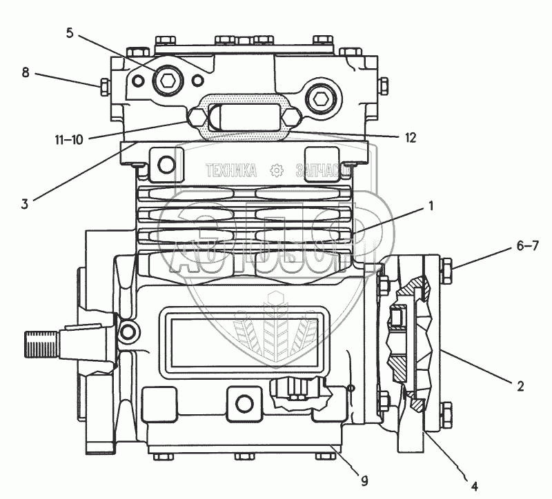 Каталог запасных частей к технике: Caterpillar-3116. 6I-1670 Воздушный компрессор