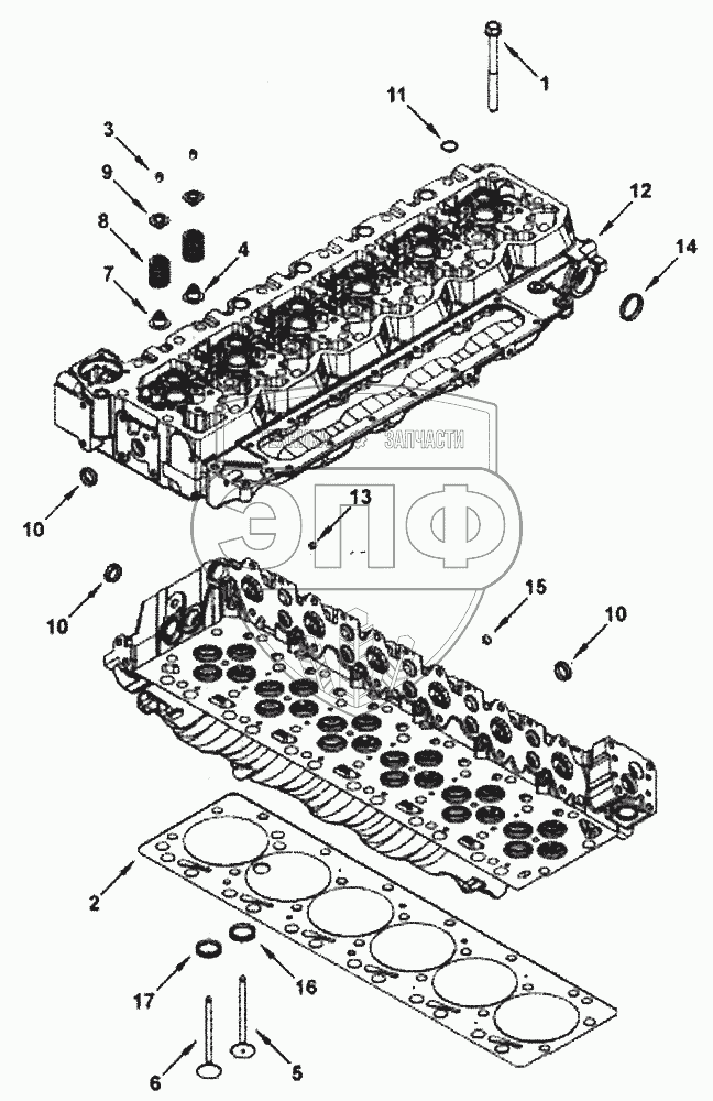 Каталог запасных частей к технике: Cummins 6ISBe-270B. Головка цилиндров