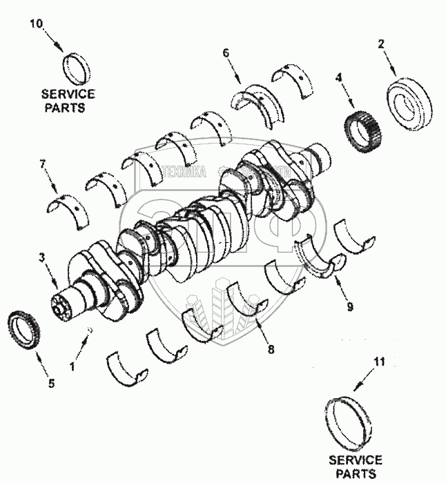 Каталог запасных частей к технике: Cummins 6ISBe-270B. Коленчатый вал и подшипники