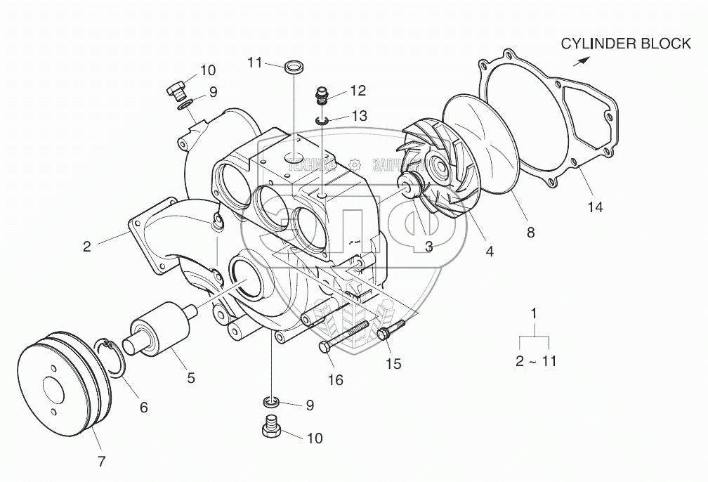 Каталог запасных частей к технике: Doosan P180LE. Water Pump
