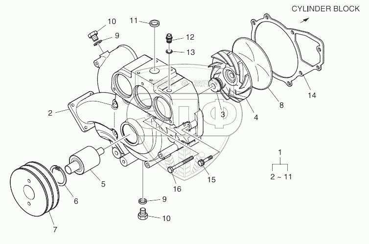 Каталог запасных частей к технике: Doosan P222LE. Water Pump