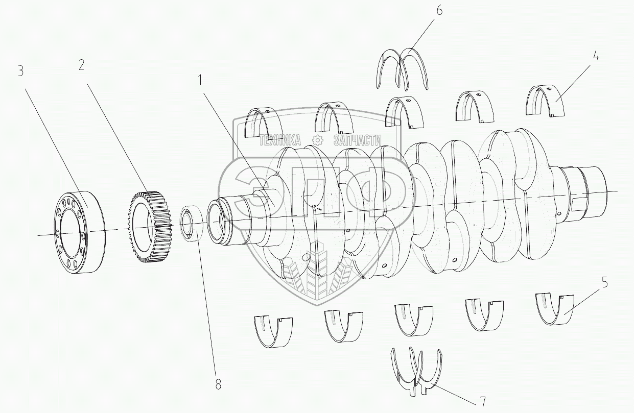 Каталог запасных частей к технике: FAW BF4M2012. CRANKSHAFT AND BEARING