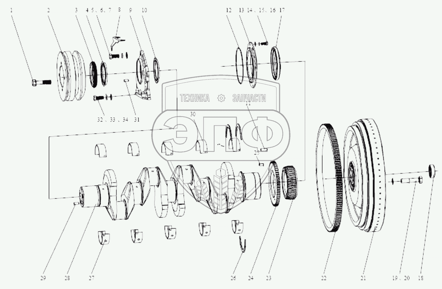 Каталог запасных частей к технике: FAW CA4DF3-13E3. Коленвал и маховик
