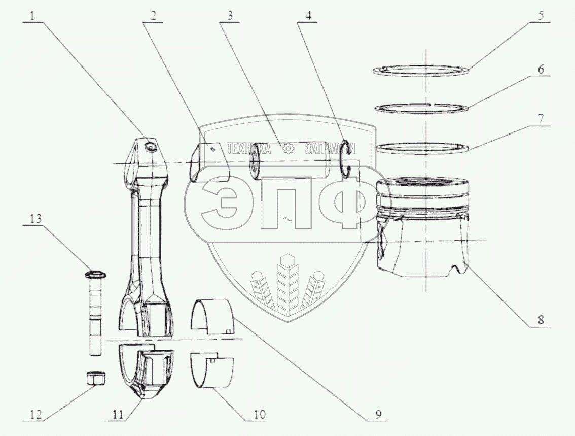 Каталог запасных частей к технике: FAW CA4DF3-13E3. Поршень и шатун