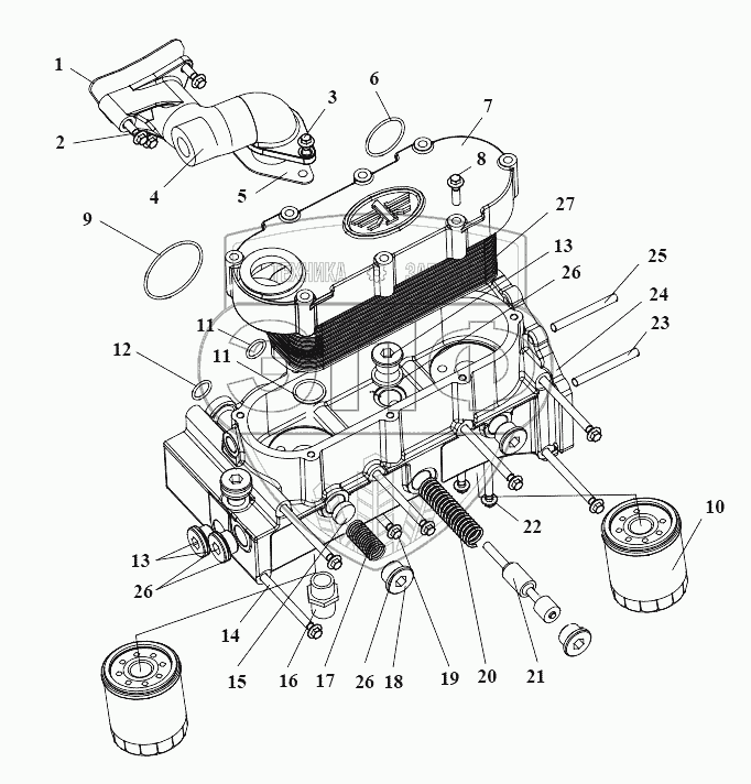 | 24 | 1013011B36D | Корпус масляного радиатора | Нет на складе | |