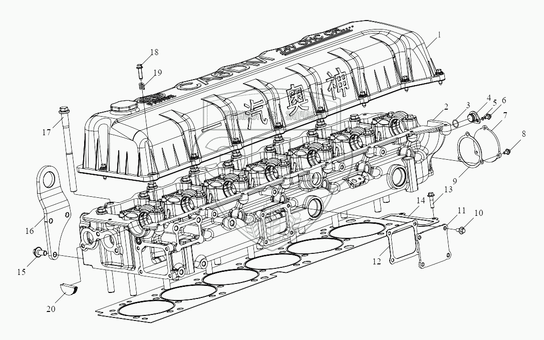 Каталог запасных частей к технике: FAW CA 6DM2. Составляющие элементы головки блока цилиндров