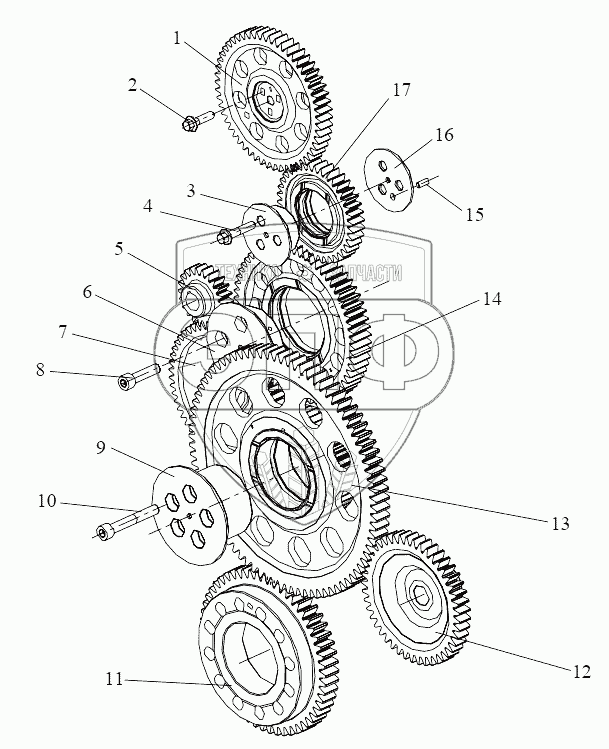 | 17 | 1006070-81D | Промежуточная распределительная шестерня в сборе | Нет на складе |