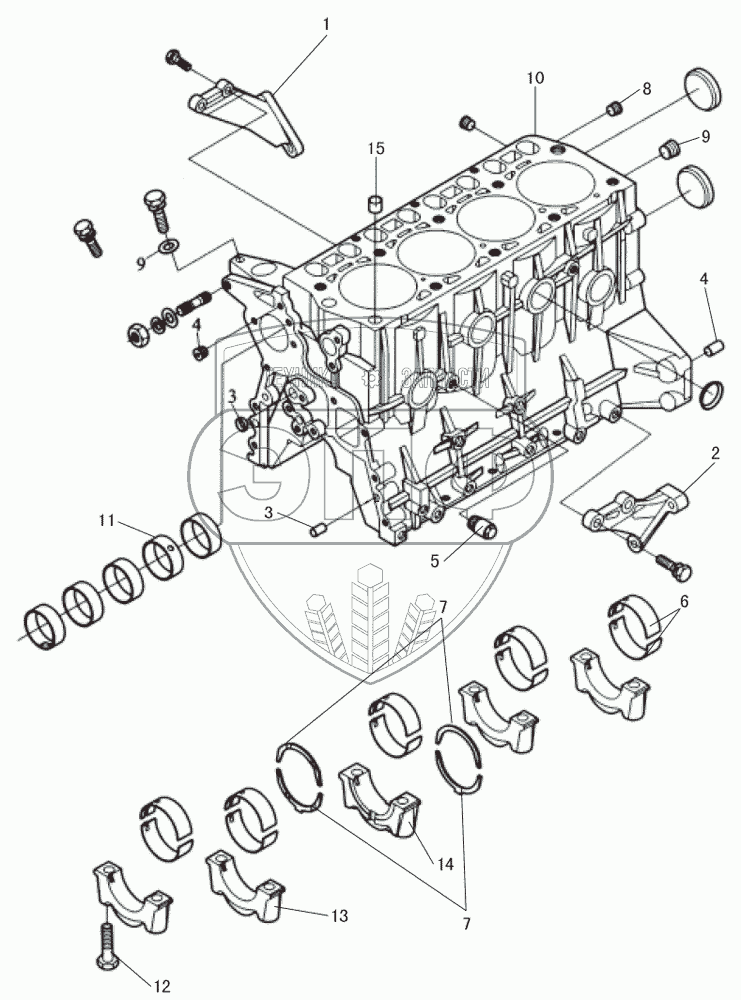 Каталог запасных частей к технике: Great Wall GW-491QE. Cylinder block assembly (1)