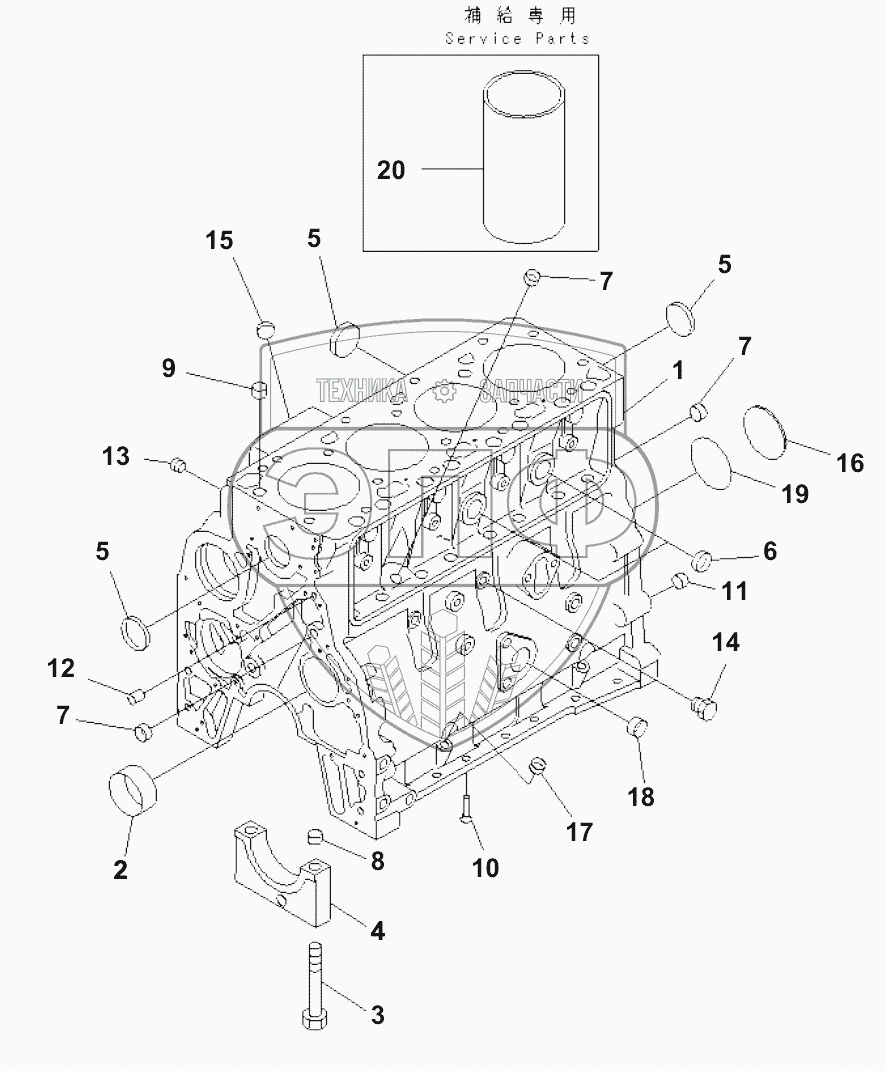 Каталог запасных частей к технике: Komatsu SA4D102E-1AB. CYLINDER BLOCK