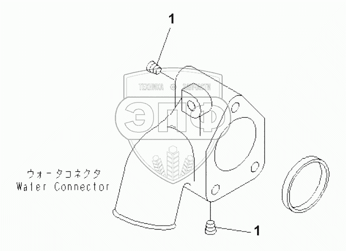 Каталог запасных частей к технике: Komatsu SA4D102E-1AB. WATER CONNECTOR PLUG