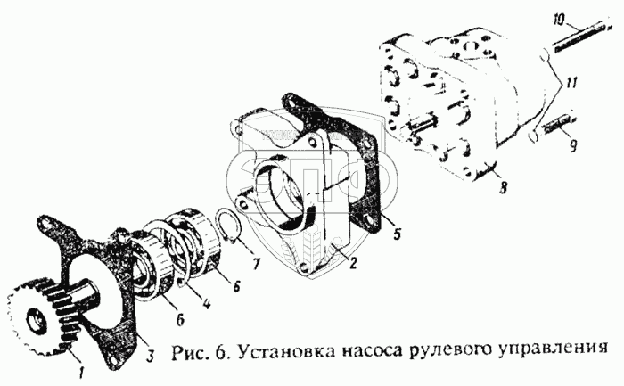 Каталог запасных частей к технике: ММЗ Д-242. Установка насоса рулевого управления