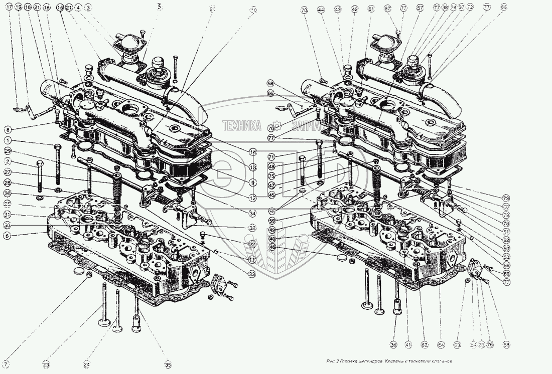 Каталог запасных частей к технике: ММЗ Д-243. Головка цилиндров. Клапаны и толкатели клапанов