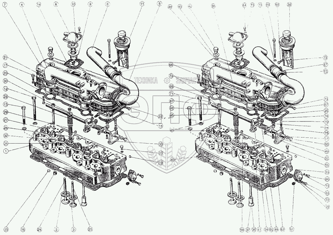 Каталог запасных частей к технике: ММЗ Д-245. Головка цилиндров. Клапаны и толкатели клапанов