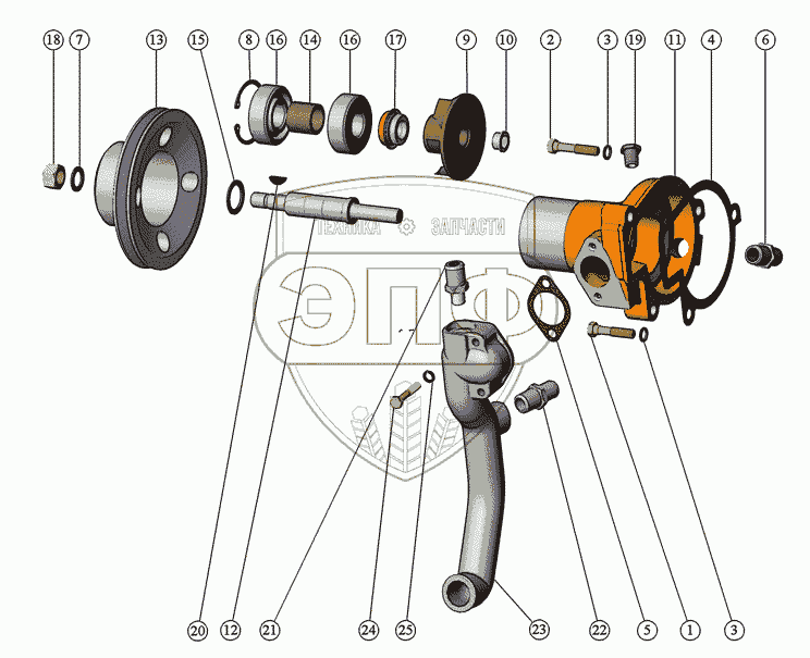 Каталог запасных частей к технике: ММЗ Д-245.30Е3 (для МАЗ). Установка водяного насоса