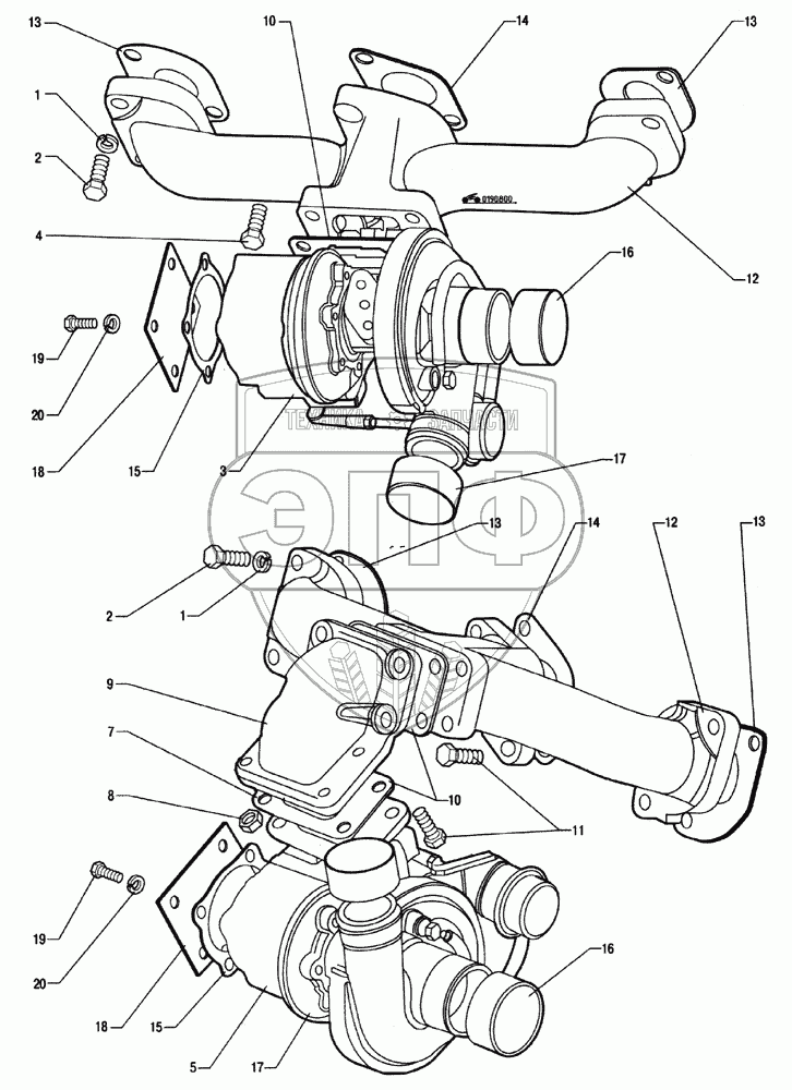 Каталог запасных частей к технике: ММЗ Д-245.7E2. Установка турбокомпрессора
