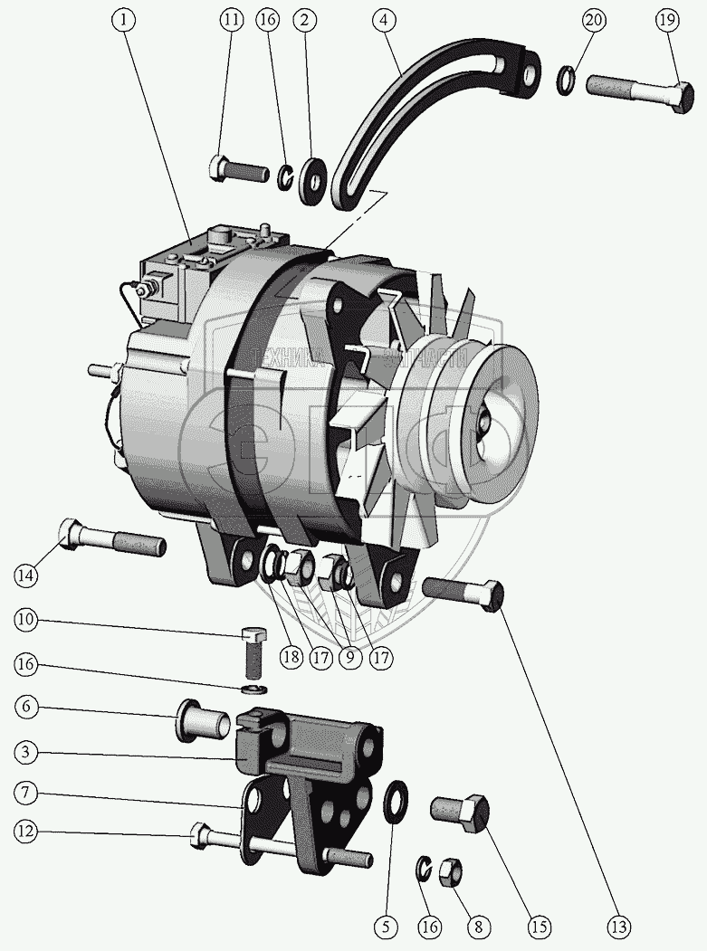 Каталог запасных частей к технике: ММЗ Д-245.7E4. Установка генератора