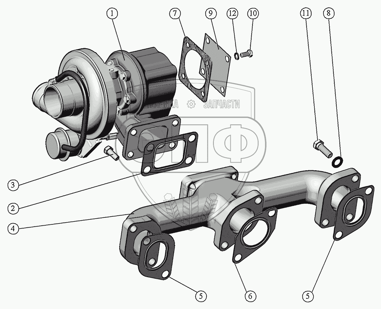 Каталог запасных частей к технике: ММЗ Д-245.7E4. Установка турбокомпрессора