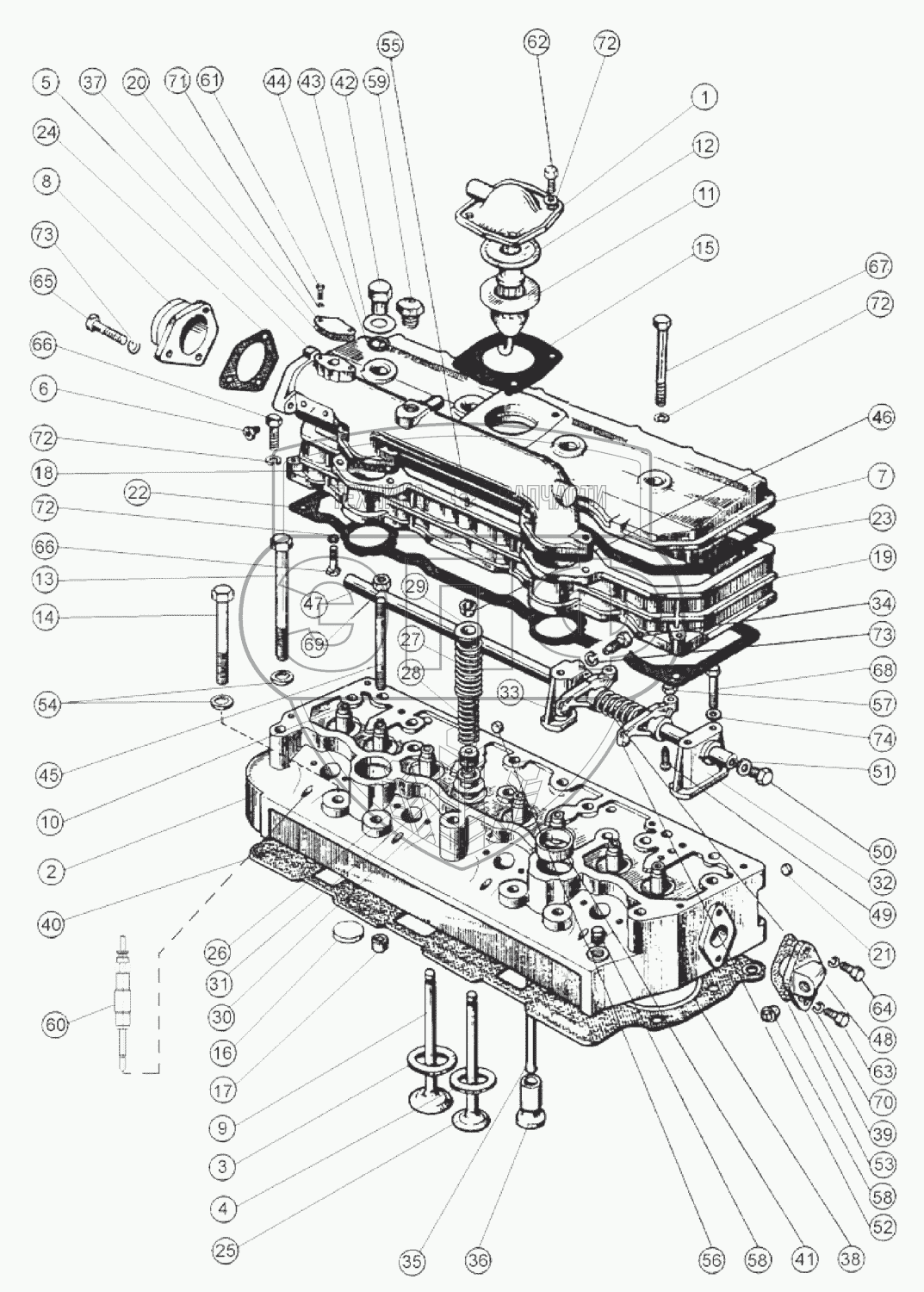 Каталог запасных частей к технике: ММЗ Д-245S2. Головка цилиндров. Клапаны и толкатели клапанов