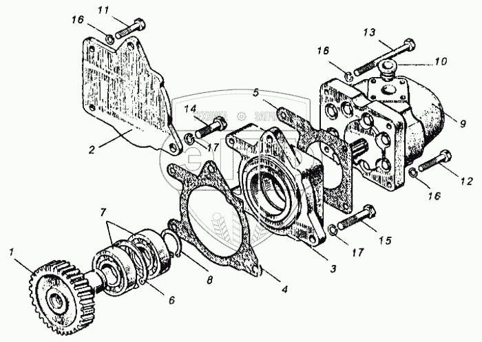 Каталог запасных частей к технике: ММЗ Д-260.1. Привод шестеренного насоса