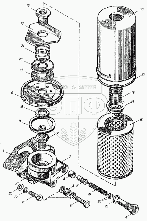 Каталог запасных частей к технике: ММЗ Д-260.1. Установка масляного фильтра