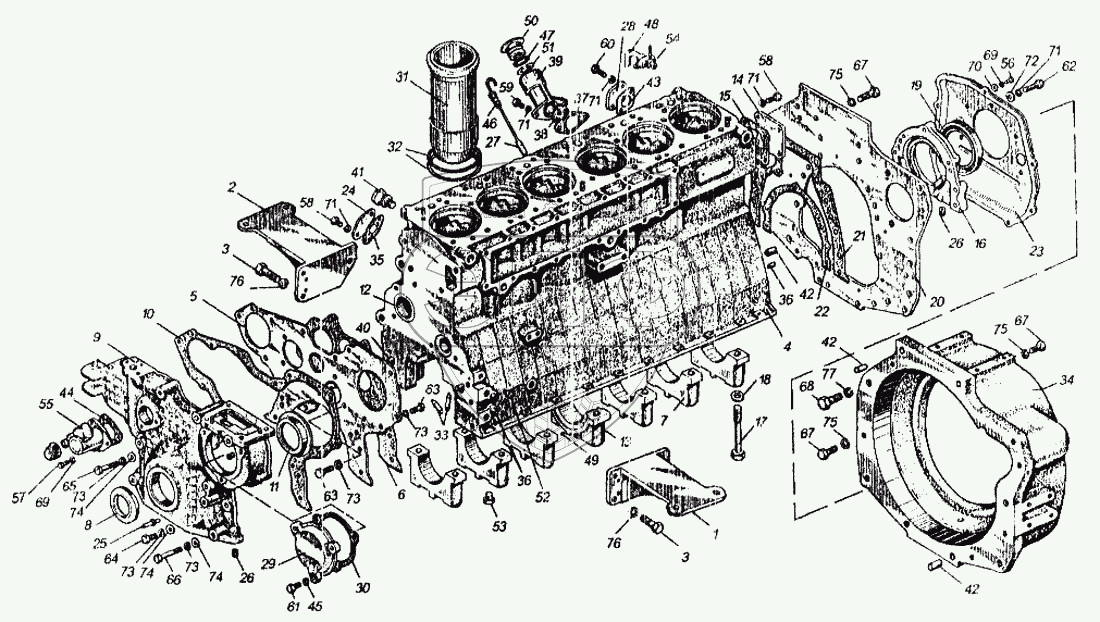 Каталог запасных частей к технике: ММЗ Д-260.4. Подвеска и блок цилиндров