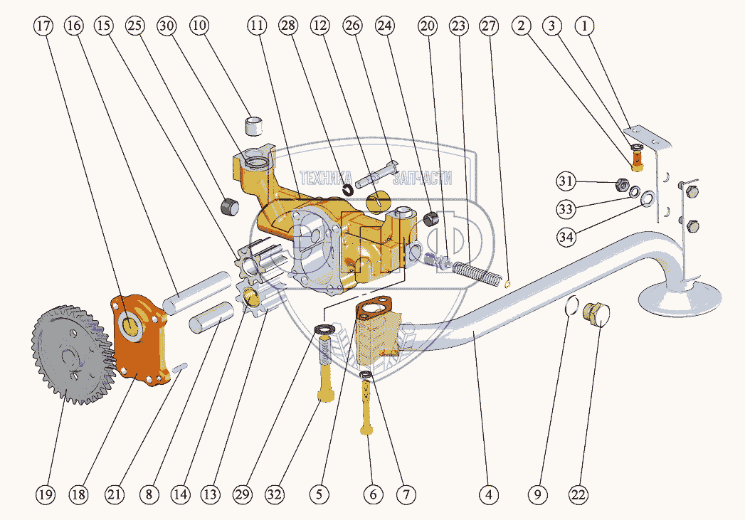 Каталог запасных частей к технике: ММЗ Д-260.7C. Установка насоса масляного