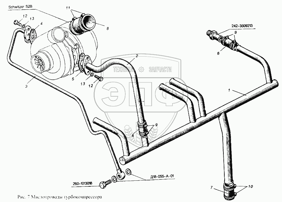 Каталог запасных частей к технике: ММЗ Д-265. Маслопроводы турбокомпрессора