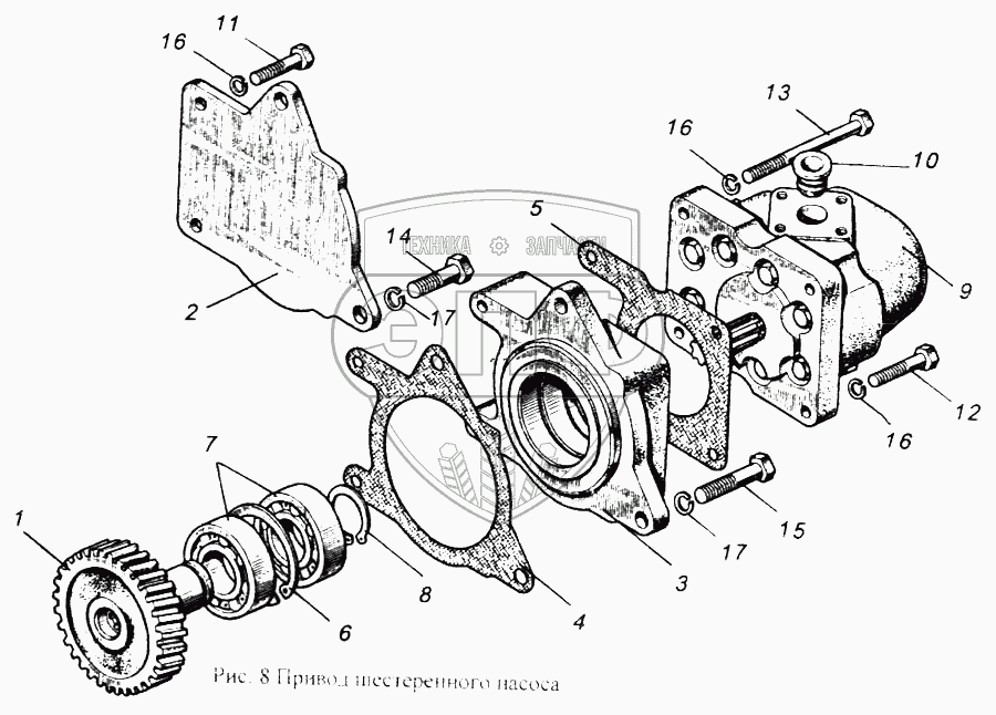 Каталог запасных частей к технике: ММЗ Д-265. Привод шестеренного насоса