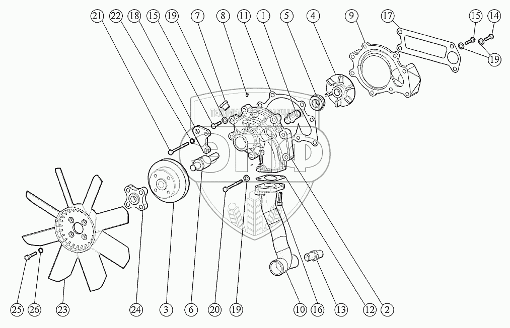 Каталог запасных частей к технике: ММЗ-3LD. Установка водяного насоса. Установка вентилятора
