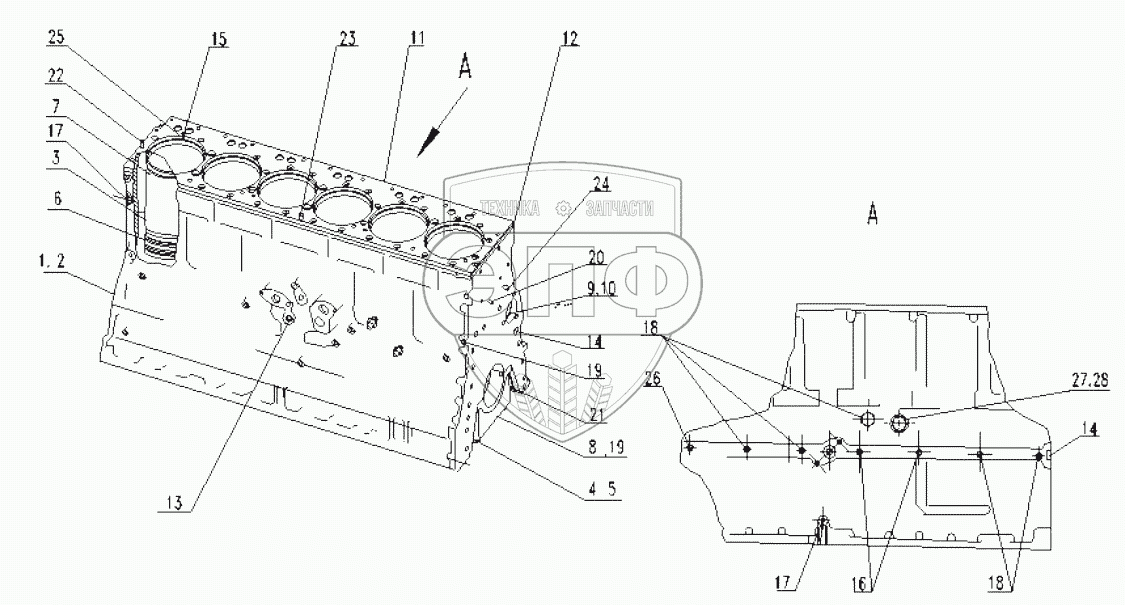 Каталог запасных частей к технике: SDEC SC11CB220G2B1. Cylinder block